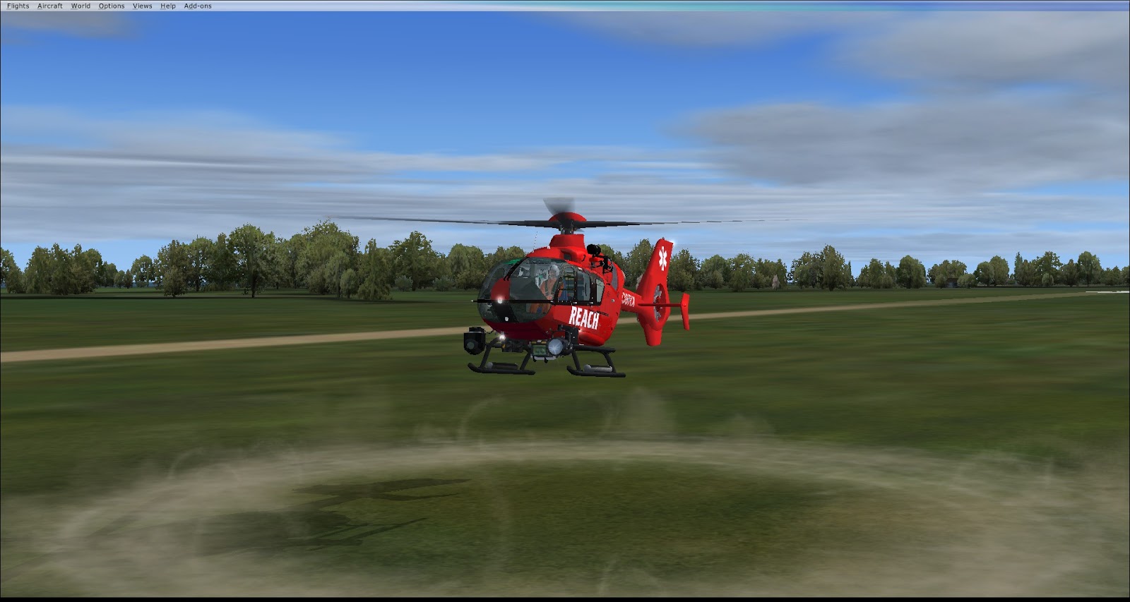 Like all FSX rotary wing craft, landing is an interesting challenge in the EC-135, but, again, not as bad as I’ve experienced in some other freeware. The EC still feels responsive and, after only a few legs of the journey, I’m starting to touch down in a more controlled manner. I’ve no doubt that with a little more practice, I’ll be able to make landing this bird look a piece of cake.